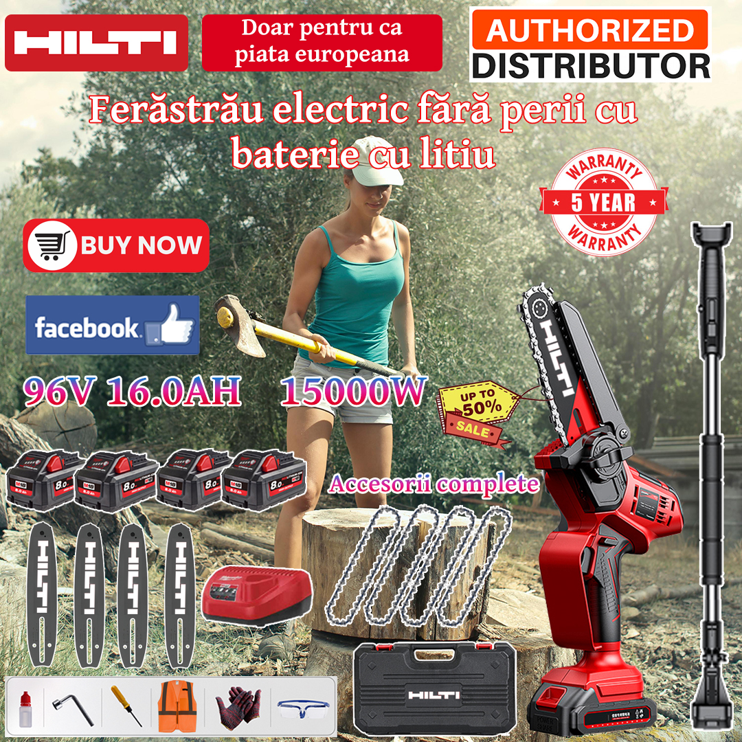 Ferăstrău cu lanț cu baterie cu litiu de 15000 W 96 V Hilti cu motor fără perii.